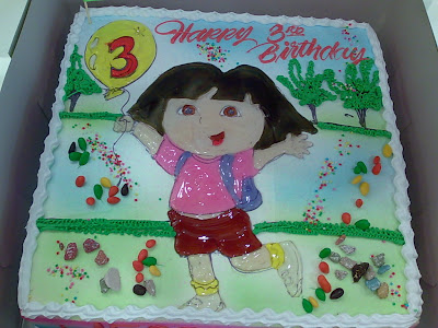 Yes, Jesse turned 3 on 11th January. Time flies so quickly that my baby girl is now 3. We had a Dora Themed Birthday party for her at home & invited some of her friends over. As i'm using daddy's phone to blog, i only have a photo of her Dora Birthday Cake.